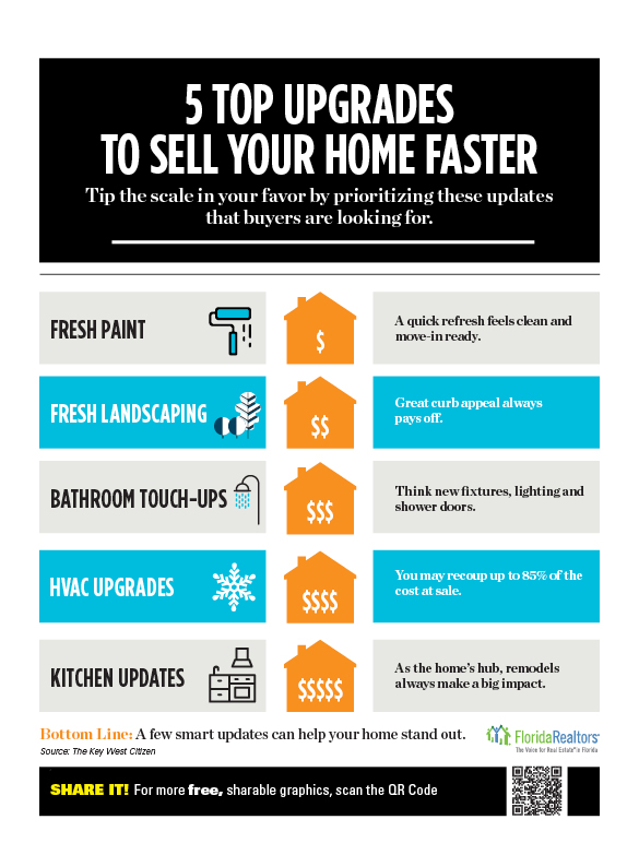 Top Upgrades to Sell Your Home Faster 5 Top Upgrades to Sell Your Home Faster Download as PDF Download as text Download as JPG Share this infographic:
